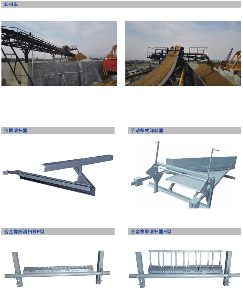 傳輸機系列 帶式輸送機 TD75型通用帶式輸送機 DTII型、DTII(A)固定式帶式輸送機 DJ型、DJII型大傾角擋邊輸送機 移動式帶式輸送機 螺旋輸送機 輸送機主要配件展示 TD75型通用帶式輸送機部件 DTⅡ型固定式帶式輸送機部件 電動滾筒系列 YD(TDY75)型油冷式電動滾筒 YZ 型油浸式電動滾筒 BYD、BYDN型擺線針輪油冷式電動滾筒 WD(II)系列外裝式減速滾筒 WD型外裝式電動滾筒 DY-1型油冷式電動滾筒 電動滾筒的選用注意事項 電動滾筒的使用與維修 減速機系列 擺線針輪減速機(雙級) 單級擺線針輪減速機
