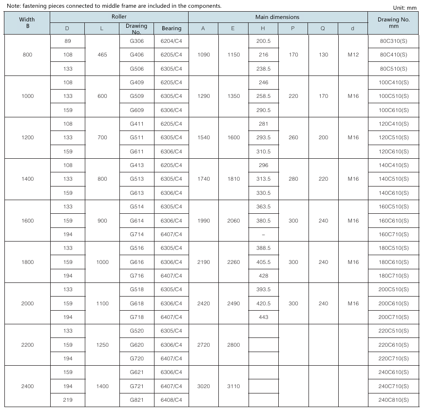 Requirement for drum surface: drawing No. with “G” as postfix refers to smooth face drum; drawing No. without “G” as postfix refers to rubber face drum.
